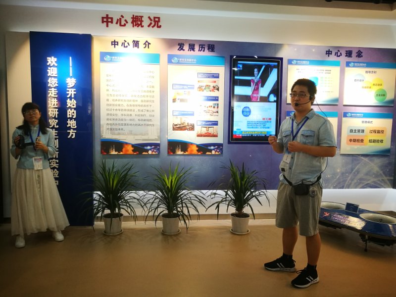 创业中心展览室中陈列着西工大历届创新团队的优秀作品,其中包括各式无人机、VR模拟飞行演示、地下探测车、浩劫格斗机器人等。在专业讲解员的介绍下,同学们了解了各个创新作品的创新点,其中地下探测车完全自动化,可以在环境恶劣的矿井下进行无人探测,为未来的地下作业提供了更先进的操作方式;部分同学还体验了VR模拟飞行操作,切身感受飞行员在高空飞行时的状态。